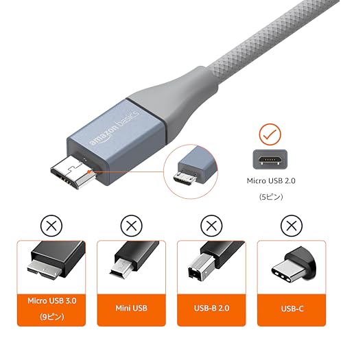 Amazonベーシック USB 2.0 A(オス) – マイクロBケーブル