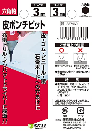 ドリルビットは皮革用の製品が販売されており、鉄工用や木工用よりも穴開けに適しています。皮ポンチビットという電動ドライバーに装着できる穴開けポンチもあります。