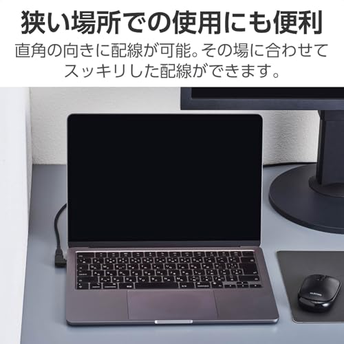 本体をより壁際に近づけたい場合は、以下のようなL字型アダプターを導入してください。これは USB3.2(Gen2)10Gbps 60w 対応です。